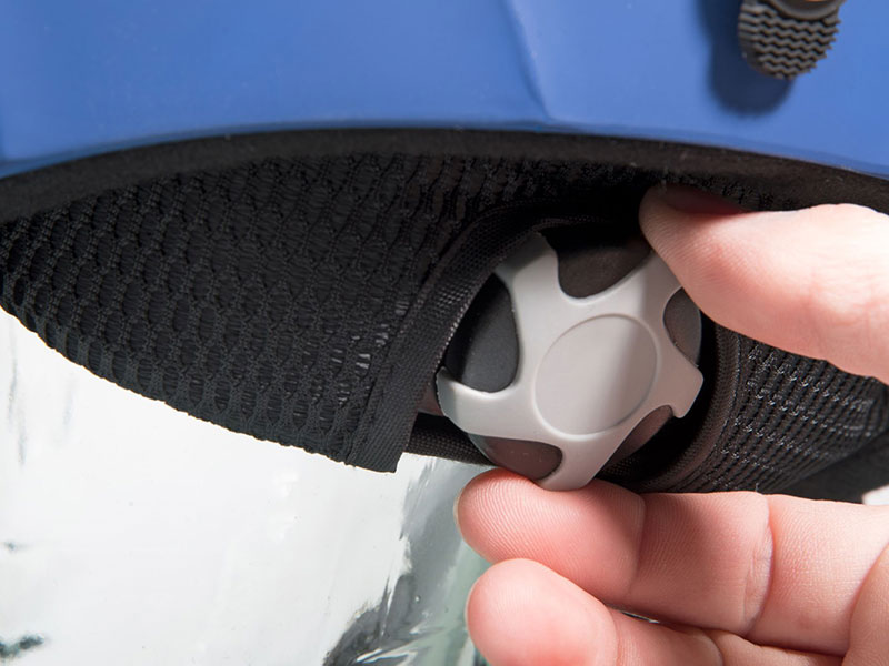De kinband bevindt zich altijd in de optimale en meest comfortabele positie dankzij de verstelmogelijkheden – de helm blijft zo in alle situaties stevig op het hoofd zitten.