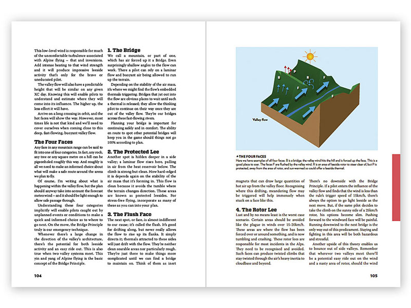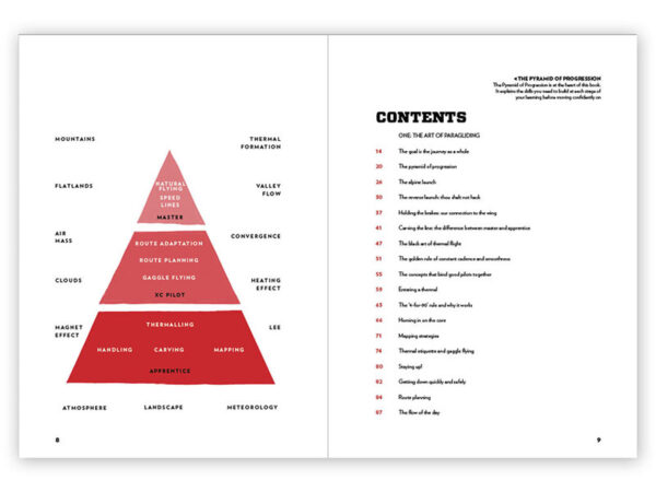 Kelly benadert de progressie van de piloot op een systematische en logische manier. Van het begrijpen van de basis van handling van een vleugel tot thermiek technieken en hoog niveau cross country advies. Hij deelt de sport op in beheersbare fasen met haalbare doelen.