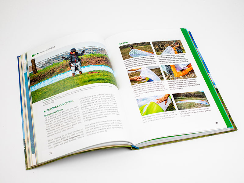 Het Nederlandstalige boek Vrij Vliegen lag aan de basis, maar Paragliding The Beginner’s Guide is vertaald naar het Engels en daarnaast behoorlijk uitgebreid met hulp van ervaren, bekende internationale piloten en instructeurs. Uitgebreide instructie en informatie, waaronder:
