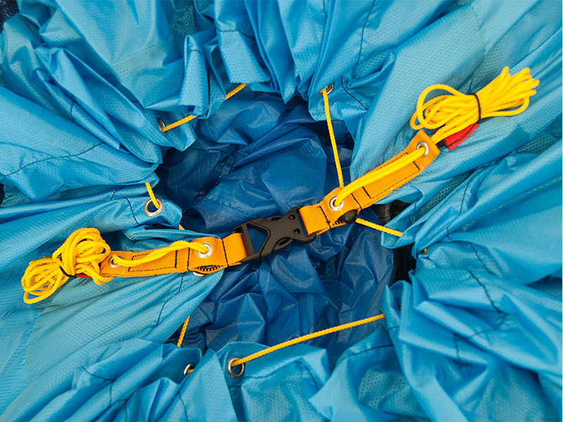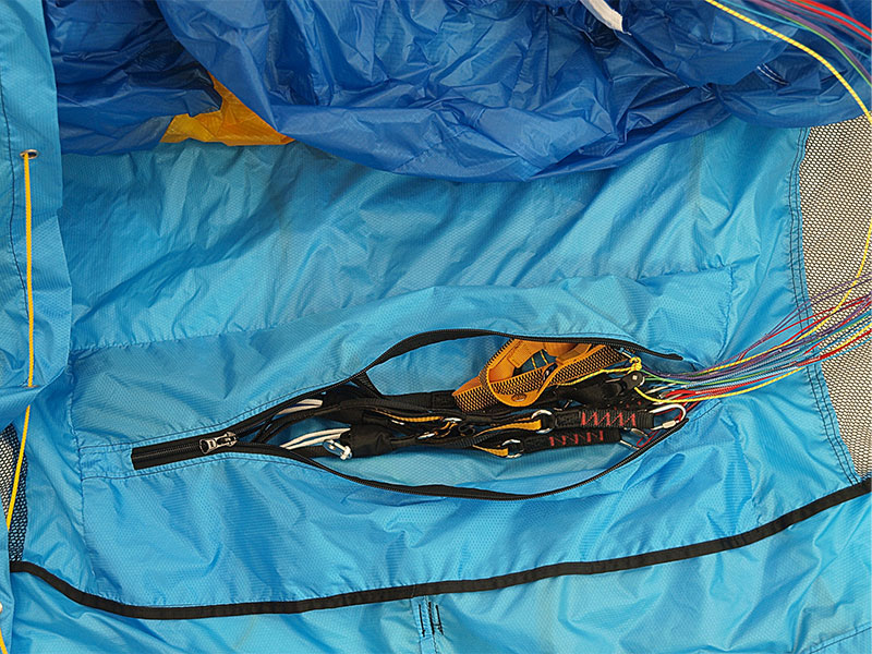 De paraglider gaat in een fieldpack losjes in de Carry All Bag. Check daarbij wel of de verstevigde celwanden niet beschadigd raken door de manier van pakken.