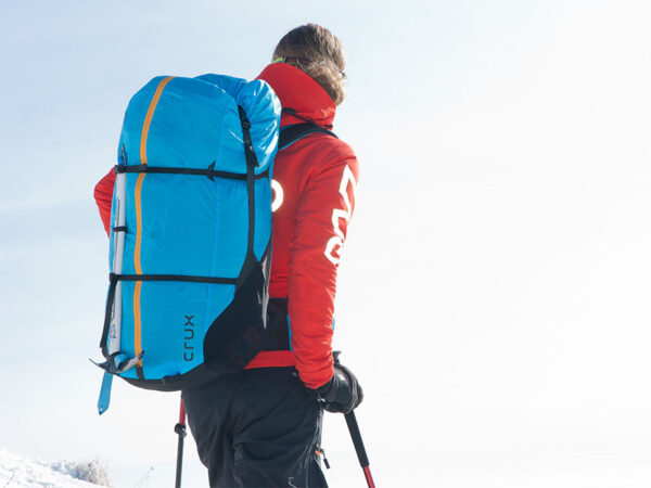 Sky Crux is een ultra lichtgewicht multifunctioneel splitleg harnas met of zonder optionele en afneembare airbag protectie.