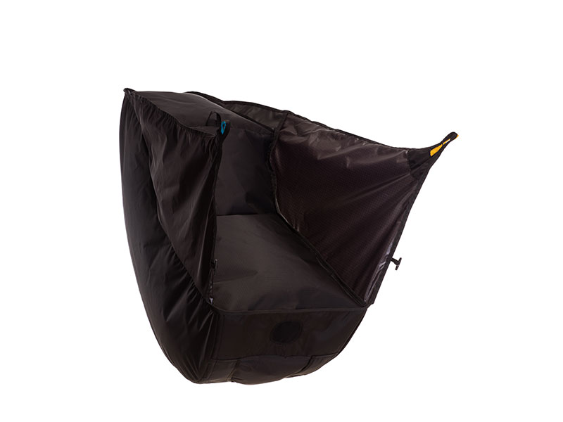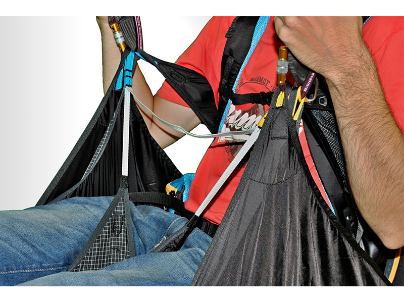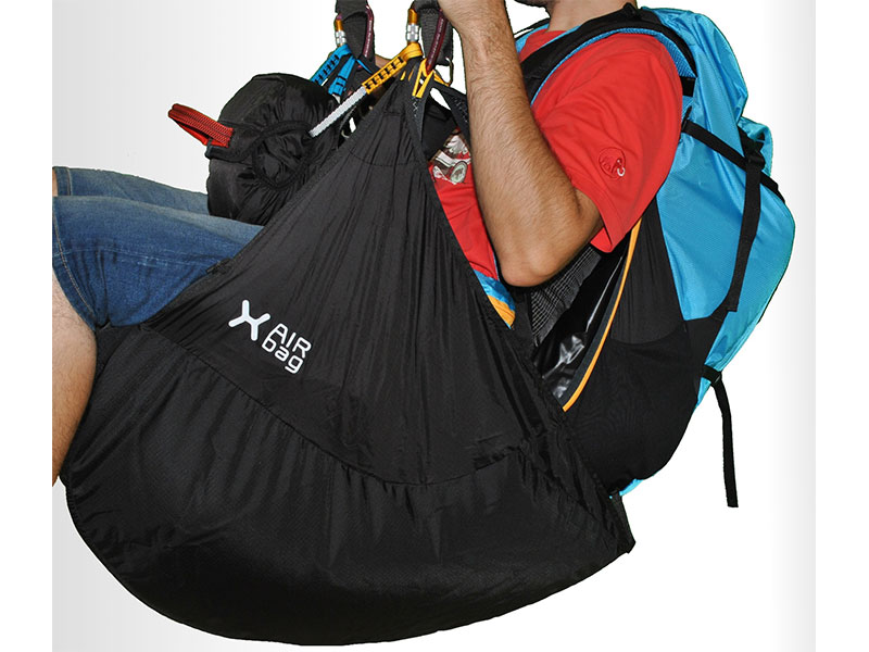 De optionele airbag kan gemakkelijk aan het harnas bevestigd worden, al naar gelang de wens van de piloot.