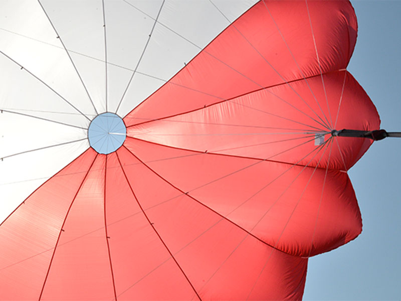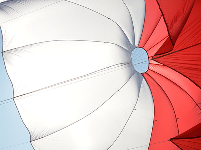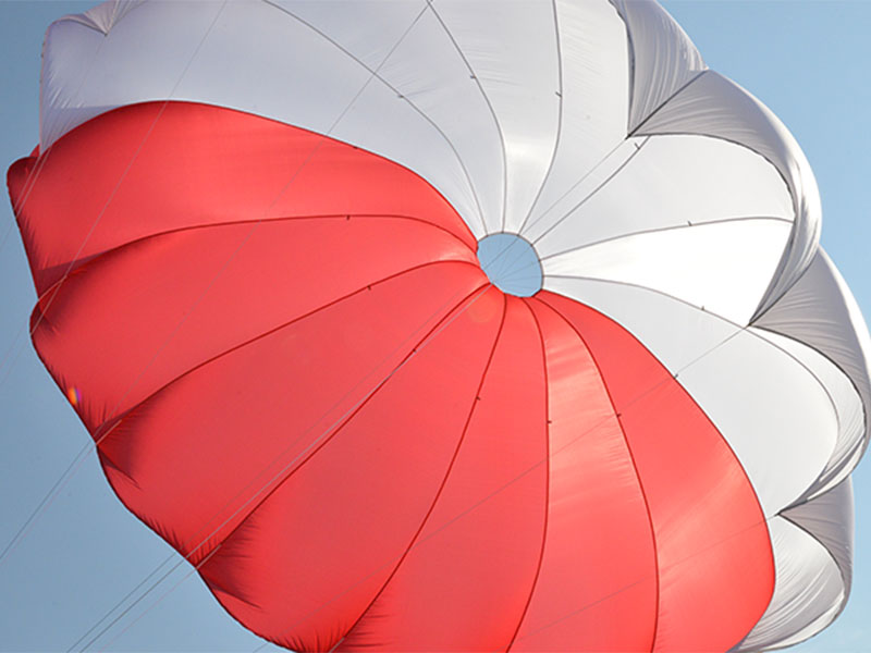 De ronde Pull-Down Apex parachute biedt een laag verpakkingsvolume en gewicht met behoud van maximale veiligheid.