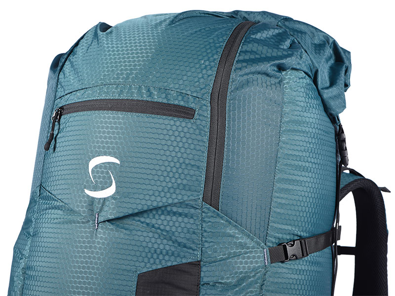 De roll top-sluiting van de TREK 2 is zeer functioneel voor trektochten, omdat de bovenkant van de tas omhoog of omlaag kan worden gerold en het volume kan worden aangepast.