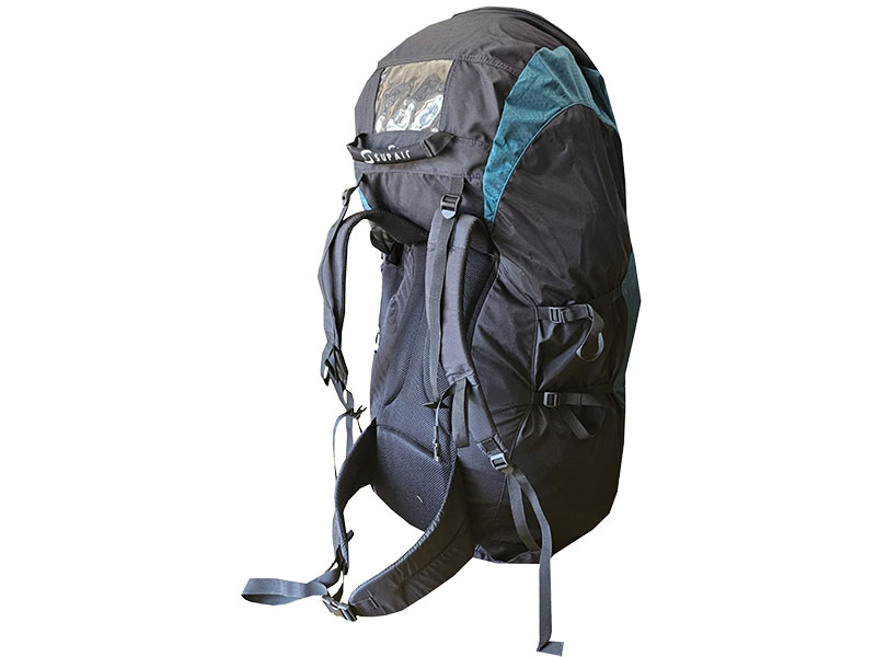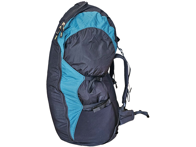 Dankzij de grote verticale rits kan de tas wijd worden geopend en gemakkelijk worden gevuld, inclusief het positioneren van glider en harnas voor het sluiten om het volume van het meegenomen materiaal te comprimeren.