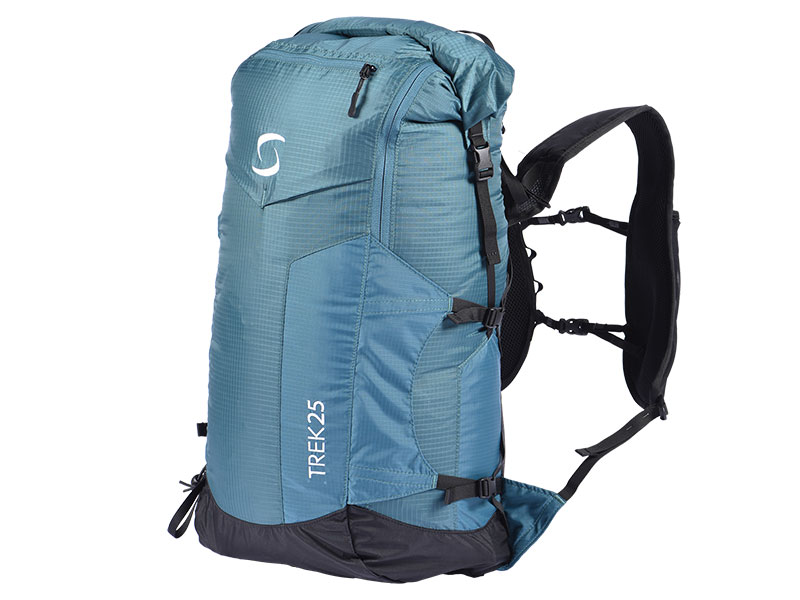De TREK 2 25L en 30L worden op een heel specifieke manier gedragen, met een harnasachtige structuur zoals die van trailrunning-tassen, waardoor de tas op de hoge rug gedragen kan worden, zodat hij meegaat met de dynamische bewegingen van wandelen en hardlopen. Twee borstbanden zorgen ervoor dat de tas goed aansluit op de schouders.